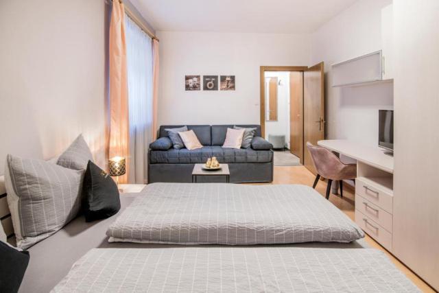 kuchynským kútom, sociálne zariadenie #bilo 3 Fugger: 36 m² - 1 spálňa s manželskou posteľou a rozkladacím gaučom pre 1 osobu, obývacia izba s kuchynským kútom, sociálne zariadenie #bilo 4 Bäckergassl: 40 m² - 1 spálňa s manželskou posteľou a rozkladacím gaučom pre 2 osoby, obývacia izba s kuchynským kútom, sociálne zariadenie #bilo 4 Sterzl: 48 m² - 1 spálňa s manželskou posteľou, obývacia izba s kuchynským kútom a rozkladacím gaučom pre 2 osoby, sociálne zariadenie |